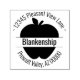 Add your stamp to mail with a custom designed self-inking rubber return address stamp. The circular design features a centred solid apple with name over the centre and address details above and below the art. Click the link to add your details or click customize to select a typeface style, size, and colour you like that works.