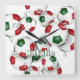 This soccer themed wall clock features the image of a cluster of varied size red, green & white soccer balls - customize with the athlete's name - by katz_d_zynes