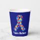 Custom Autism awareness ribbon paper cup for autistic friends or family. A cool proud autism mom or dad design that can be personalized with any text below the puzzle piece ribbon of blue, yellow, and red for your fundraiser or awareness walk.