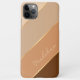 Contemporary dark coffee brown, tan, beige, and girly glamourous faux gold coloured striped pattern cell phone case. With room to customize with a name, monogram, or initials of your choice. Beautiful, modern, and cool cover for the trend-savvy and art-loving hip trendsetter, artsy motif lover who wants to protect their phone from dust and dirt, wear and tear. This design is available for Apple iPhone 6, 7, 8 Plus, 10 or X, XR, XS, 11, 12, 13 Mini, 14, 15 Plus, and Pro Max cellphone cases. Show off your style, look fashionable trendy, and feel stylish with a unique design on a mobile device accessory of your choice.