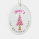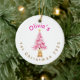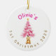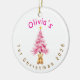 New baby gift for newborn girl. Pretty pink tree with teddy bear on front. Name and birth stats on back. Personalize all info. Perfect holiday gift for new parents.