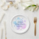 Custom baby shower plates with soap bubbles design. Elegant template with name of child and date. Script typography. Suitable for newborn boy or girl. Personalize with your own text. Cute party supplies for celebrations with friends and family.