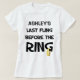 Last Fling Before the Ring! Fun Bachelorette party t-shirts for the bride's last night out! Personalize with the Bride's name in the space provided.