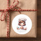 Modern baked with love bakery custom sticker. Cute bakery girl chef holding a delicious strawberry frosted cake.