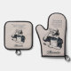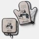 Crafted with durable, heat-resistant materials and trimmed with a classic black border, this set is designed for both style and functionality. Whether you’re grilling at a backyard BBQ, baking up a storm in the kitchen, or preparing a celebratory feast, these accessories provide reliable protection and a splash of character. The vintage-inspired design, combined with modern personalization, makes it a standout piece for anyone who appreciates clever, elegant designs.