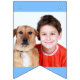 Cool personalized bunting flag decoration in blue for a Jewish boys Bar Mitzvah. This cute Judaism celebration banner features the Star of David on either corner. Customize with a baby and current pic of your boy.