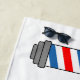 Custom barber shop pole and moustache logo Beach Towel. Traditional red and blue stripe barber pole drawing for men's hair salon. Stylish design for hair salon owner. Make your own trendy barber shop presents for boss, coworker, employees etc. Unique hair stylist gift ideas. Personalized with your own business name or company slogan.