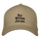 Fits well due to elastic edging, not adjustable. Good qualty material. Good quality embroidering. Subtle lettering (white on beige) just as my wife likes.