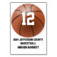 Basketball event table number card done in white, with a big brown basketball, in the middle, with bold white table number, in the middle of the ball. Black text at the bottom is ready to personalize to read what you want. Personalize the number and text, one for each table at your event. The background colour can easily be changed to any colour you want in customize mode.