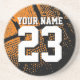Custom basketball jersey number and name sandstone coaster. Sporty design for home or office. Cool Birthday gift ideas for friends, family, sport coach, trainer, co worker, dad, husband etc.
