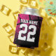 Custom name basketball sports jersey number Can Cooler. Personalized coolies for home, office, tailgate party and other events. Add your own team name, monogram or funny quote. Perfect for soda and other cold drinks. Customizable background colour. Change the quantity to get the cheapest price per can cooler. This beverage holder is also available for bottles. Fun Birthday gift idea for men and women who enjoy the game. Great for player, fan, coach, dad, mom, friends, family etc. Cool vintage ball graphic with your names. Double sided print with pink background colour.