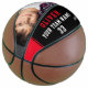 Custom Basketball with Name, Number, Team Name and Photo. Personalize it with your photo, name, team name, your team number and the year. The text is trendy white and red typography on a black background with red stripe. You can change any text on the basketball or erase it. A perfect gift for a basketball player, teammates, coach, your friends and family. Great keepsake to remember your favourite sport.