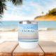 Cette photographie de plage pittoresque vin tumbler cadeau de Destin Florida présente le magnifique coucher de soleil rose et orange touchant doucement les vagues de l'océan au-dessus du sable et de l'herbe de mer. Magnifique souvenir de garde balnéaire pour un mariage de vacances ou de destination avec date de voyage personnalisée et nom de famille pour votre lieu de vacances préféré.