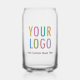 Easily personalize this 16 oz pint size can shaped glass with your company logo and custom text printed in full colour. Available as a single glass, as a set of two, or as a set of four. Do not microwave. No minimum order quantity and no setup fee. Made in USA.