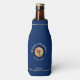 Blue background colour with two thin golden stripes, and a circle monogram to personalize with your own name and initials. For any purposes and occasions... cool to promote a beer party, bar, business...
