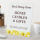 A custom small business honey sign with large text on top for your business name and products, and smaller text on the bottom for your address or other info, and vintage art of honey bees on a honeycomb. Customize it to change fonts, background colours, upload your logo, even save your design for later.