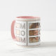 Celebrate the best mom ever with this modern 3 photo grid coffee mug. Featuring a clean and minimalist photo collage layout, this mug is the perfect way to display your favorite family memories in a trendy pink and white aesthetic.