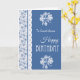 A very pretty Birthday Card to personalize, with an Indigo Blue floral border, trimmed with faux lace, on the front cover and a matching motif on the inside, where you can also personalize the message. This design is part of the Posh and Painterly 'Indigo' collection.