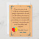 The card itself is very nice with nice detail and font on the card. It comes with an envelope. However, it is not a true card being it is on nice stiff cardstock type paper but you have to write on the back of this card. For my purpose, it would be nice, if it were a fold type card where you write your message on the inside. So what I did was found some scrapbooking paper that coordinated with the card and placed it on that so it was a "true" card. It is a nice looking card.