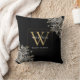 Elegant personalized black and gold roses floral monogram name pillow featuring a gold monogram initial. Designed by Thisisnotme©