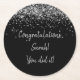 Custom Black and Silver Graduation Party Sparkle Round Paper Coaster