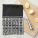 Modern custom name black and white abstract geometric pattern kitchen towel.