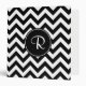 A customizable black and white monogram frame is on a black and white chevron pattern. The spine is also customizable.