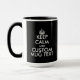 Custom Keep Calm and your text 15oz morphing mugs. Make your own funny Keep Calm and Carry On parody coffee cup.  Vintage Keepcalm typography design with crown and morph handle. Cute customizable party favour or thank you gift idea for men women and kids. Personalized drinkware for home or office. Create one for mom, dad, father, mother, friends, family, sister, brother, employee, coworker, boss, coach, teacher, nurse, bride and groom, newly weds couple, husband, wife etc. Fun black and white design for any occasion like Birthday party, Christmas, Retirement, Reunion, Wedding, Graduation etc. Also available in big oversized morphed mug and large travel to go mugs. Add your own humourous quote or saying.