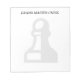 Custom black and white pawn chess piece notepad for chess lovers, grand master and other players of the game. Custom note pads with water mark logo and name. Personalized memo pad design for home, club, school or office. School / office supplies for men, women and kids. Customizable background colour. Use ALT code to change the icon into a pawn, rook, bishop, knight, queen or king. ♕♔♘♗♖♙ ♚♛♞♝♜♟