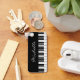 Custom black and white piano keys metal keychain. Rectangular key chains with keyboard print. Add your own name, business name, company slogan, quote, monogram etc. Elegant Birthday gift idea for piano players, musician, pianist, music teacher, students, kids, artist etc. Double sided print.