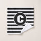 A custom wash cloth that has a black and white striped pattern with a monogram logo in the centre. You can personalize this wash cloth with your initial by using the custom template. This product makes a great gift for any occasion.