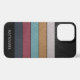 Classy, fun, and contemporary ivory grey, mustard ochre yellow, turquoise teal green, vintage rose red, and dark slate blue coloured retro chic horizontal stripes pattern design on a faux leather texture background. With room to customize or personalize with a name, monogram, or initials of your choice. Stylish original and cool cover for the trend-savvy and art-loving hip trendsetter, trendy look style motif lover who wants to protect their phone from dust and dirt, wear and tear. This design is available on a variety of decorative, fashionable, artistic, trending, unique modern, and cool Apple iPhone 6, 7 and 8, 10 or X, XR, XS, 11, 12, 13 Mini, 14, 15 Plus, and Pro Max cellphone cases. Show off your style, look fashionable trendy, and feel stylish with a unique design on a mobile device accessory of your choice.