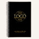Elegant Modern Custom Black and Gold Promotional Company Business Logo Notebook . Perfect for promotional gift, corporate marketing and small business branding, this minimalist design offers a sleek look that enhances your brand. Personalize it with your text and logo for effective promotional advertising. Ideal for professionals who want to keep business simple yet impactful.