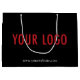 Sometimes you only need a few custom printed gift bags, especially if you're a small business, so here is a great way to just get what you need in the colour and design you want. Easily personalize this large black gift bag with your own company logo and website address. You can easily change the black background to another custom colour. Available in matte or glossy finish. The dimensions are 12.5 inch x 4 inch x 9 inch. No minimum order quantity and no setup fee.