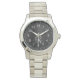 Easily personalize this trendy elegant watch design featuring pretty black sparkling glitter on a black brushed metallic background.