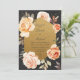 Custom Black Gold and Roses Peach Flowers Wedding Invitation