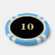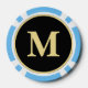Create your own custom, personalized, 10 denomination, modern faux gold monogram on black background, monogrammed light blue poker chips, in 9 vibrant colours, and featuring textured surface for easy stacking. Simply type in your initials / monogram, to customize. You may even change the denomination from 10 to one of your own choice. While you add/design, you'll be able to see a preview of your creation, throughout. One-of-a-kind chips, great as wedding favours, drink tickets, golf marker, charming keepsakes for weddings, tokens for drinks at events, favours for birthdays, bachelorette parties and corporate events, bachelor party gifts, hosting a poker night, and for home - local - club poker tournaments. Or to just add an element of style to the table. Make a great gift for birthday, fathers day, mothers day, christmas, holidays, new years, wedding, marriage anniversary, and more, for your loved ones, mom, dad, husband, wife, bride, groom, grandpa, grandma, golfer friends, poker player, partner, and family.