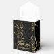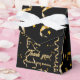 This custom black and gold thank you favour box is decorated with faux gold curly ribbon and confetti stars. It says Thank You in script typography and this can be customized to a different message if you wish. Also, the event name says Melanie's 30th birthday party, but you can personalize it to any event and name. The guests will appreciate this parting gift.