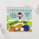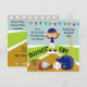 Batter up! These colourful customized baseball theme birthday invitations are great for boys who love baseball or are having a baseball theme birthday party celebration! Features flags, baseball field, baseball mitt, baseball, helmet,baseball mitt, and a boy with black hair wearing a red and blue baseball cap and uniform! Easy to customize with your child's birthday party specifics!