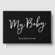 Custom Black Keepsake Script Baby Book for Mother features a minimalist and elegant design, perfect for preserving a mother’s love and memories. The white text on a black background adds a timeless touch, with “My Baby” in script and the child’s name with Est. 20XX in a modern sans-serif font. The spine reads “A book of moments & memories”, while the back cover carries the heartfelt message “With all my love, Mom.”