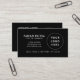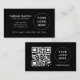 Modern, minimalist black business cards. Showcase your brand with a custom QR code and logo. Fully customizable template for your contact information.
