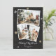 Custom black photo collage Merry Christmas cards featuring three photos with snowflakes and stars on a black background.