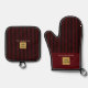 Custom Black & Red Stripe Oven Mitt & Pot Holder Set