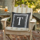 Custom Black Square Monogram Initial Letter Outdoor Pillow