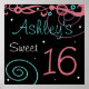 Poster read "Ashley's Sweet 16". Personalize it with the birthday girl's name. Colours include pink, black, turquoise and purple against a black background with twinkling stars. For more sweet sixteen party accessories visit the rest of this shop!