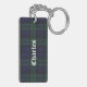 Stylish key chain done in the blue and green Scottish Black Watch tartan plaid pattern. Bold white old world style text, on the front and back, is ready to personalize for yourself or as a great gift idea.