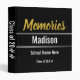 This black binder has white text on the spine that you can customize. Display text: Class of 20##. The front has a faux (not foil) script that reads "Memories". In the middle, there's white text for the graduate name. At the bottom, you can add the school name and class of 20##.
