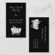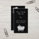 This custom business card template has a simple design of a place setting of black and white silverware on a pretty white table napkin embellished in grey on an elegant black background. The font is a retro script. Click Customize It to change fonts, background colours, add your business logo and more, even save your design for later.