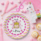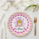 Blonde Princess 7th Birthday paper plates features a little princess with blonde hair wearing a golden jewelled tiara surrounded by pink flowers, text that reads I'm 7 Today, a border of chevron stripes of hot pink, light pink, gold, and white, and an area you can personalize with her name! The seventh princess birthday party will be off to a great start with these colourful princess paper plates. Look for the matching napkins, T-shirts, buttons, bags, and more!