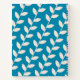 Custom Blue 70s Retro Leaf Pattern Monogram Notebook